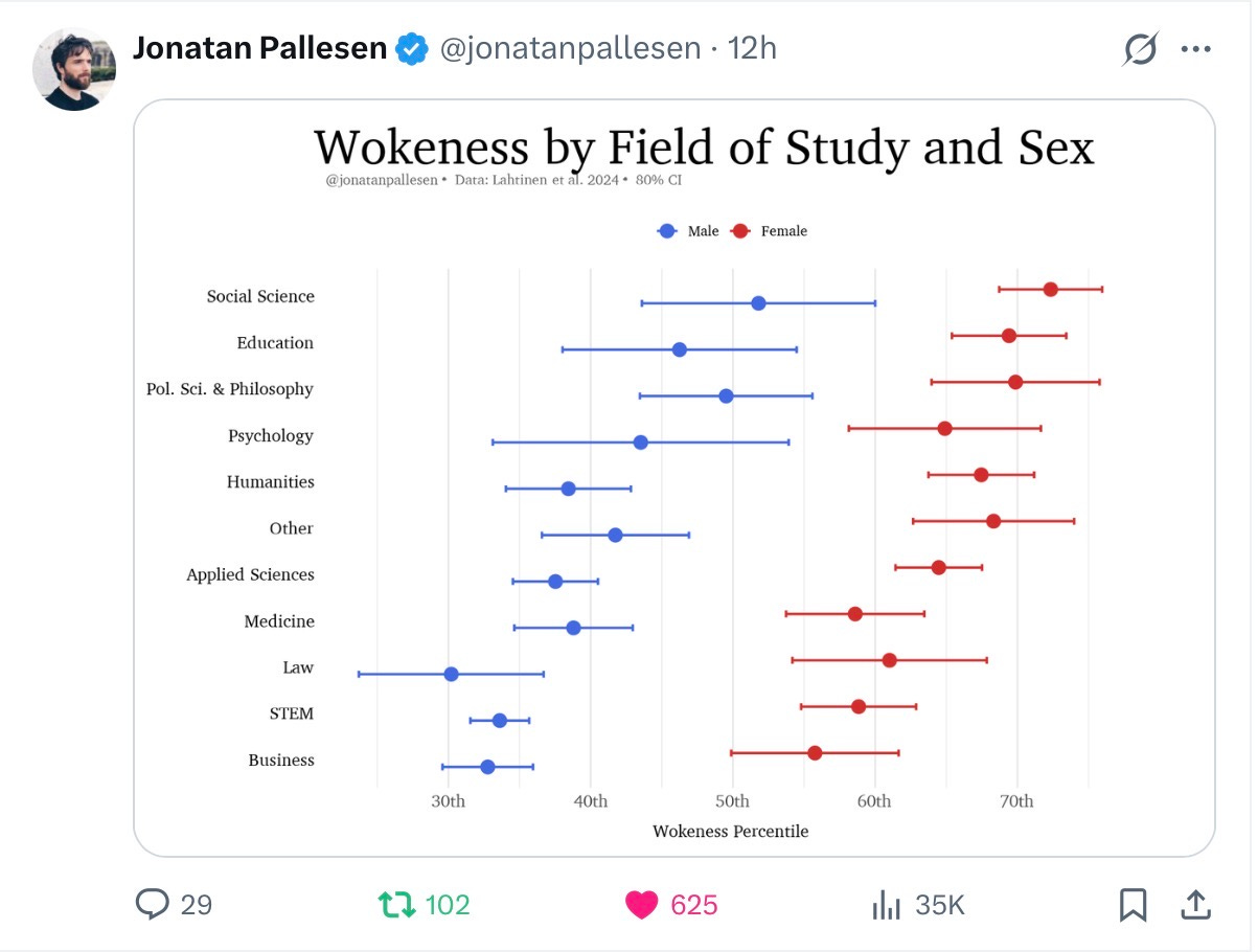 It is an exaggeration to claim that “wokery” is just the consequence of feminisation of institutions and occupations. It is, however, true that what works for—what is emotionally resonant in—increasingly feminised institutions and occupations has been selected for.