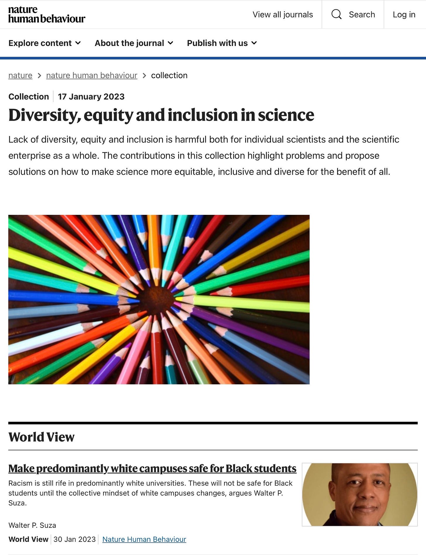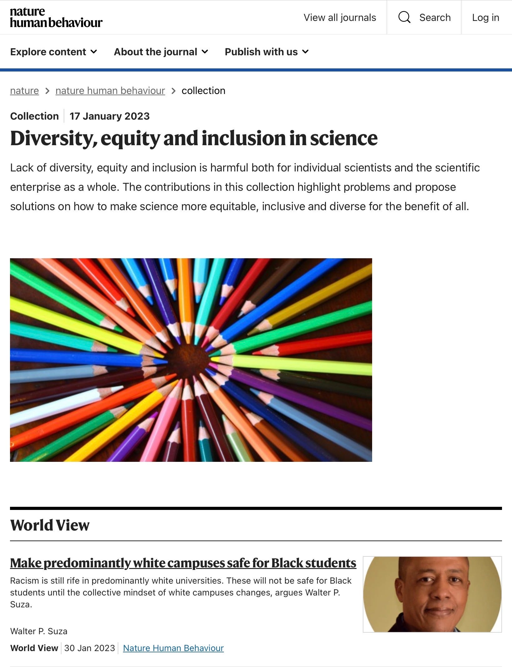 ‘Diversity, equity and inclusion in science,’ Nature Human Behaviour, collection, 17 January 2023. https://www.nature.com/collections/daficfhiff