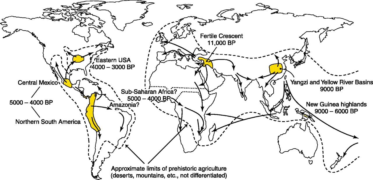 In order to take up farming as a dominant subsistence strategy, foragers have to change their attitudes to both time (becoming much more patient) and space (accepting property in land). They also need access to plants that are sufficiently controllable, and sufficiently calorie-dense, to sustain farming. That is to say, plants that are sufficiently domesticated to become crops.