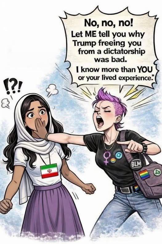 Queers for Palestine, and feminists for Hamas/Hezbollah/Iran, are particularly blatant examples of this. Hamas in Gaza and the Islamic regime in Iran literally kill homosexuals and violently repress women’s rights: they are religiously committed to women having less rights than men and being subordinate to them.