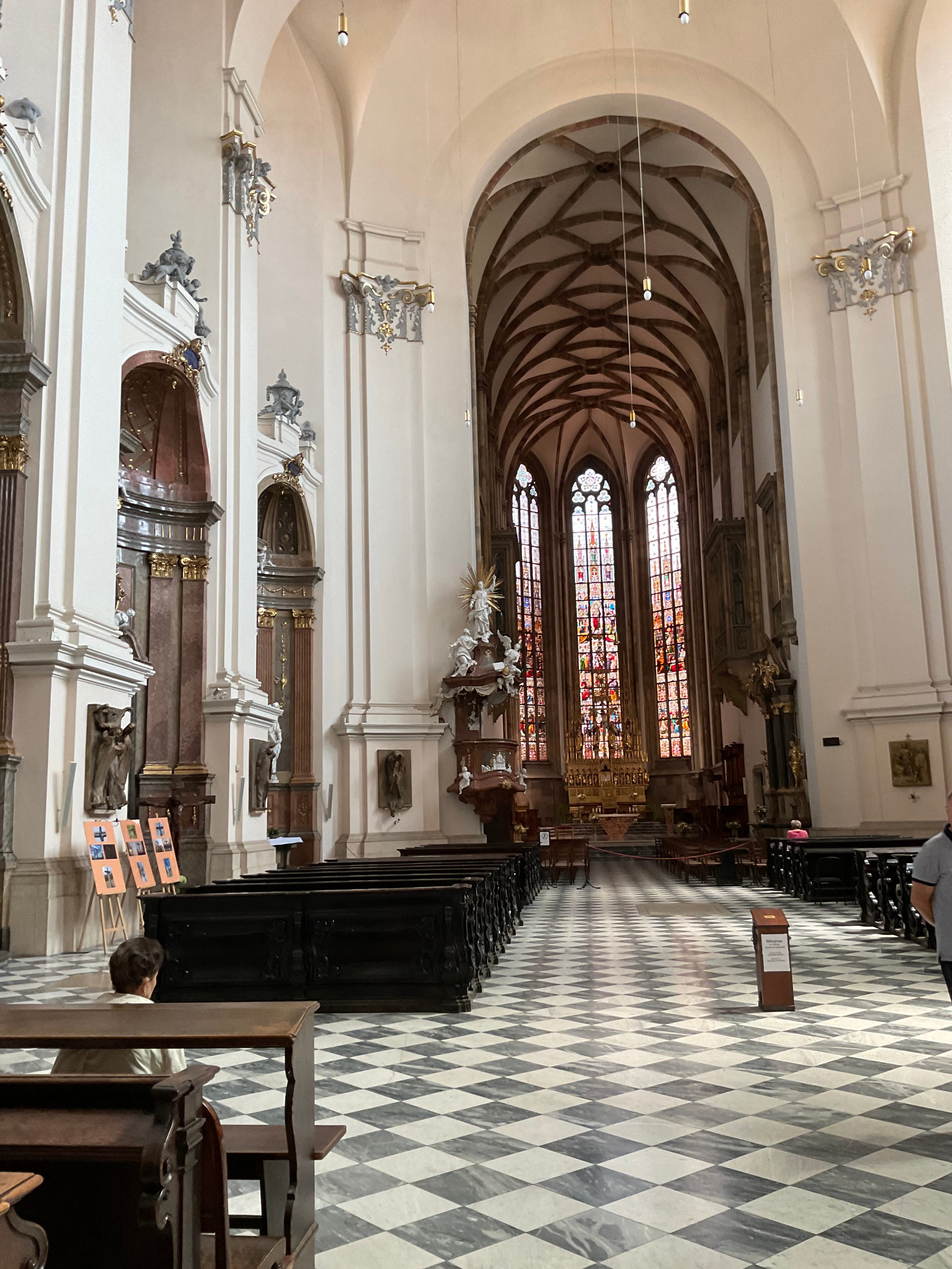 Sunday, we found a lovely breakfast place, walked the medieval walls (mostly where they had been) and went into St Martin’s Cathedral, whose inside was much more Baroque than the consistently Gothic outside led us to expect. Though there clearly had been some intent to make the Baroque fit in with the Gothic: apart from the dreadfully overdone pulpit. We also explored spritz’s that were not aperol in a cafe-restaurant in one of the parks.
